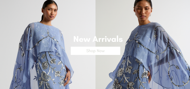 Juliana Blue Embellished Midi Dress With Cape Detail